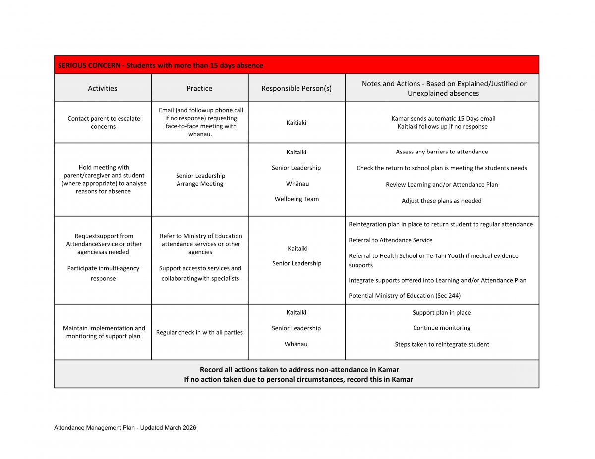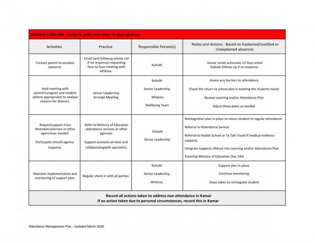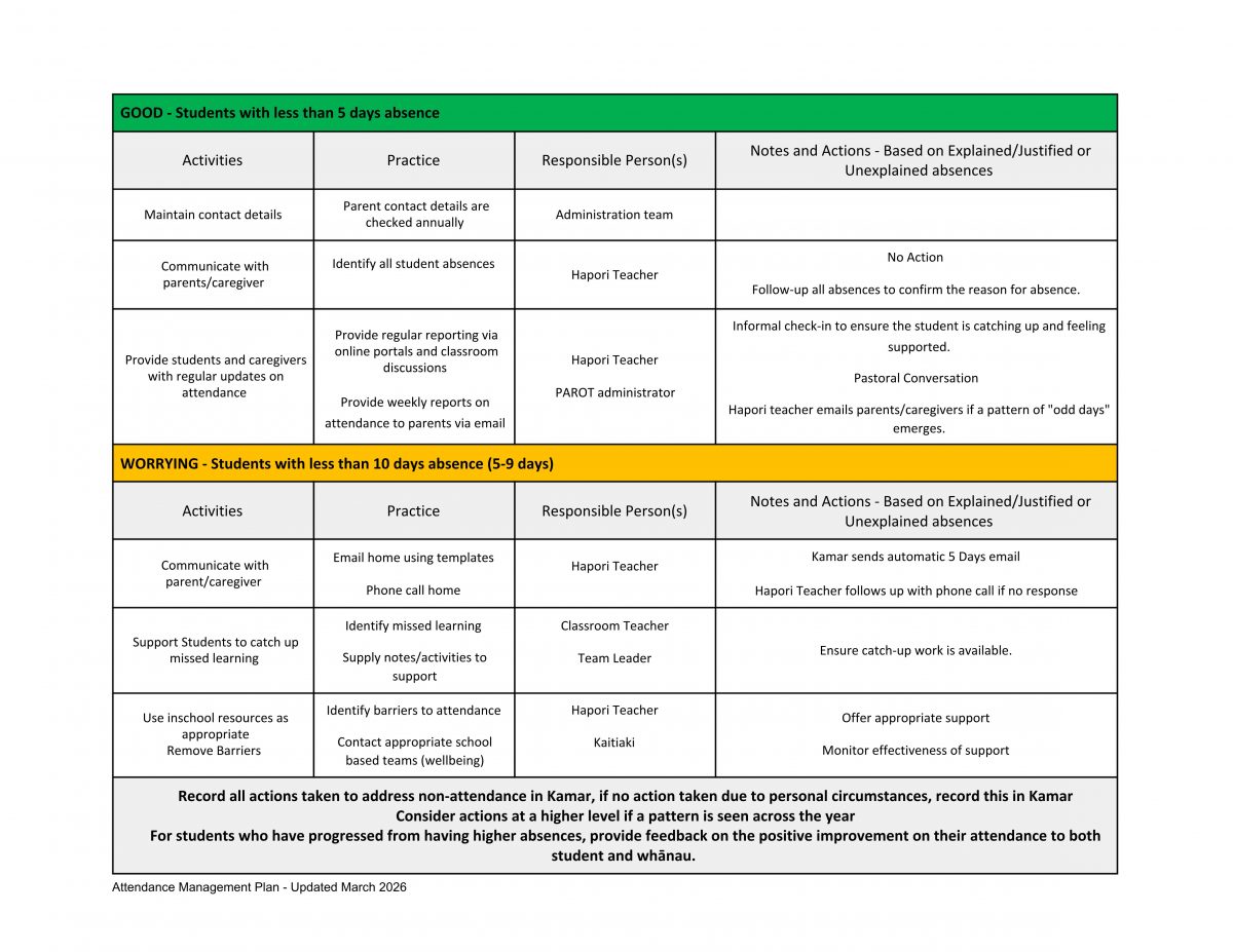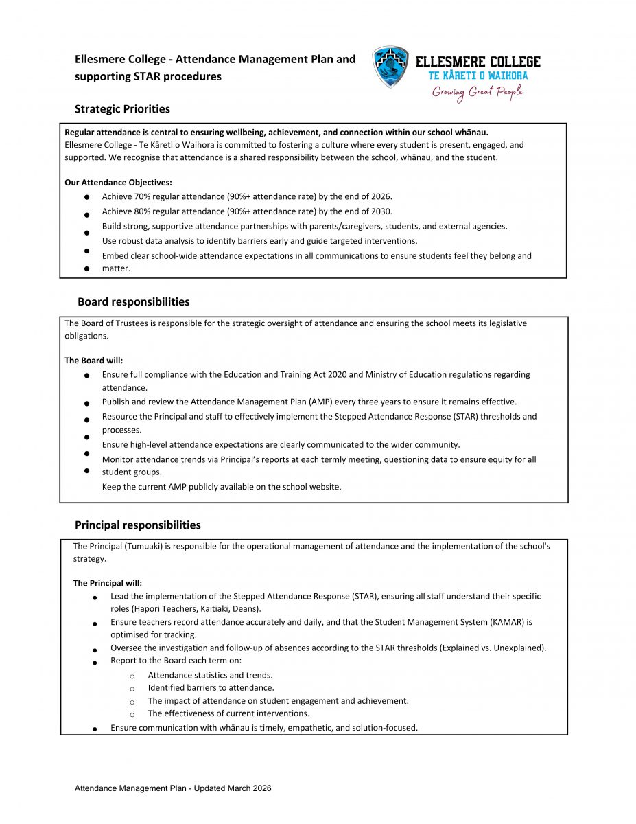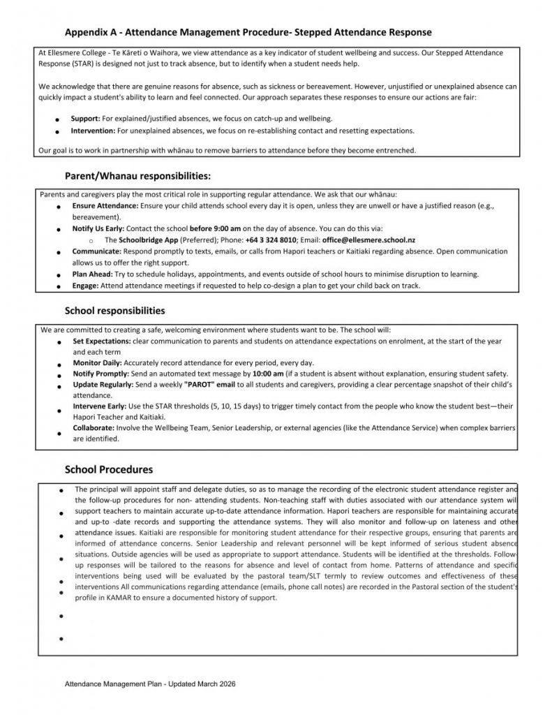 Ellesmere College – Te Kāreti o Waihora: Attendance Management Plan
