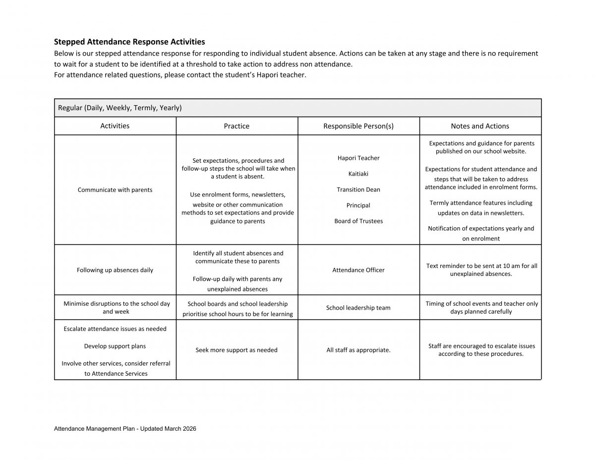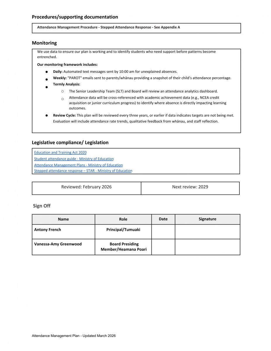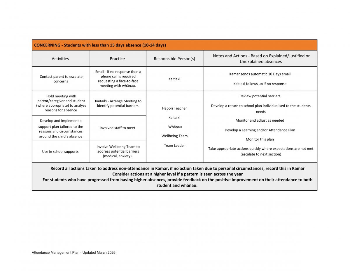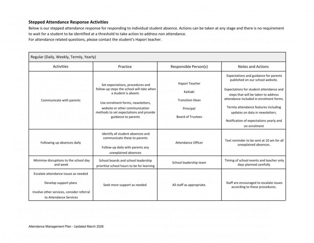 Ellesmere College – Te Kāreti o Waihora: Attendance Management Plan